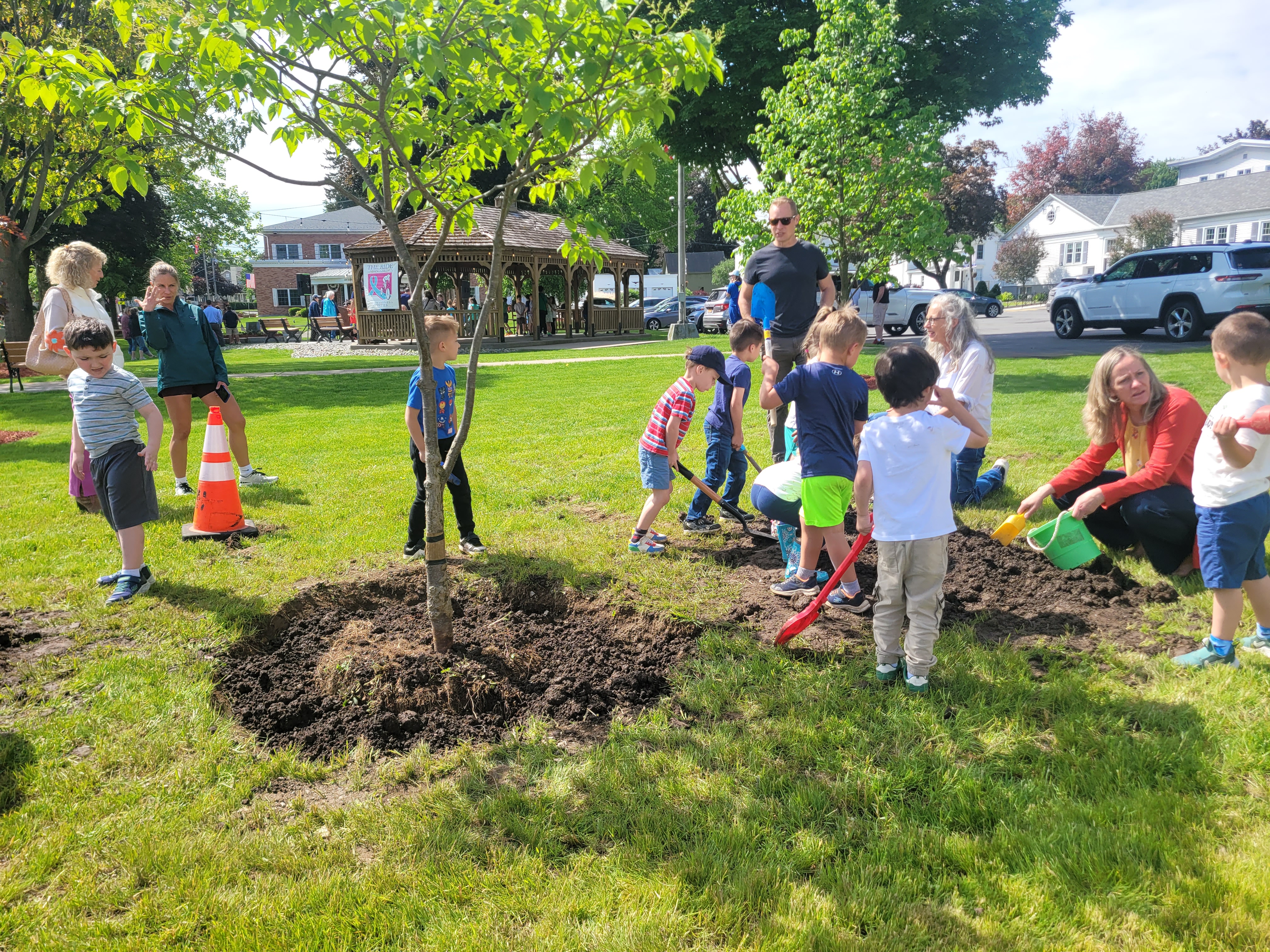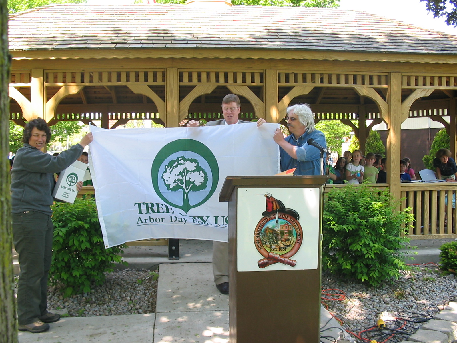 The Village of New Hartford takes pride in celebrating Arbor Day by planting a tree each year. This program was the idea of village resident, Mr. Ray Belden, who loved the community and the environment. He took the initiative to present to then-mayor John Kazanjian, in the spirit of volunteerism, the dream that someday the Village of New Hartford would become a Tree City USA - and in 1983, Mr. Belden's dream materialized. Each year, villagers gather to celebrate and plant a tree together. Trees create clean air to breathe, a shady retreat to sit and relax, places for children to use their imagination and play as well as housing for essential wildlife. They also add beauty to our world.